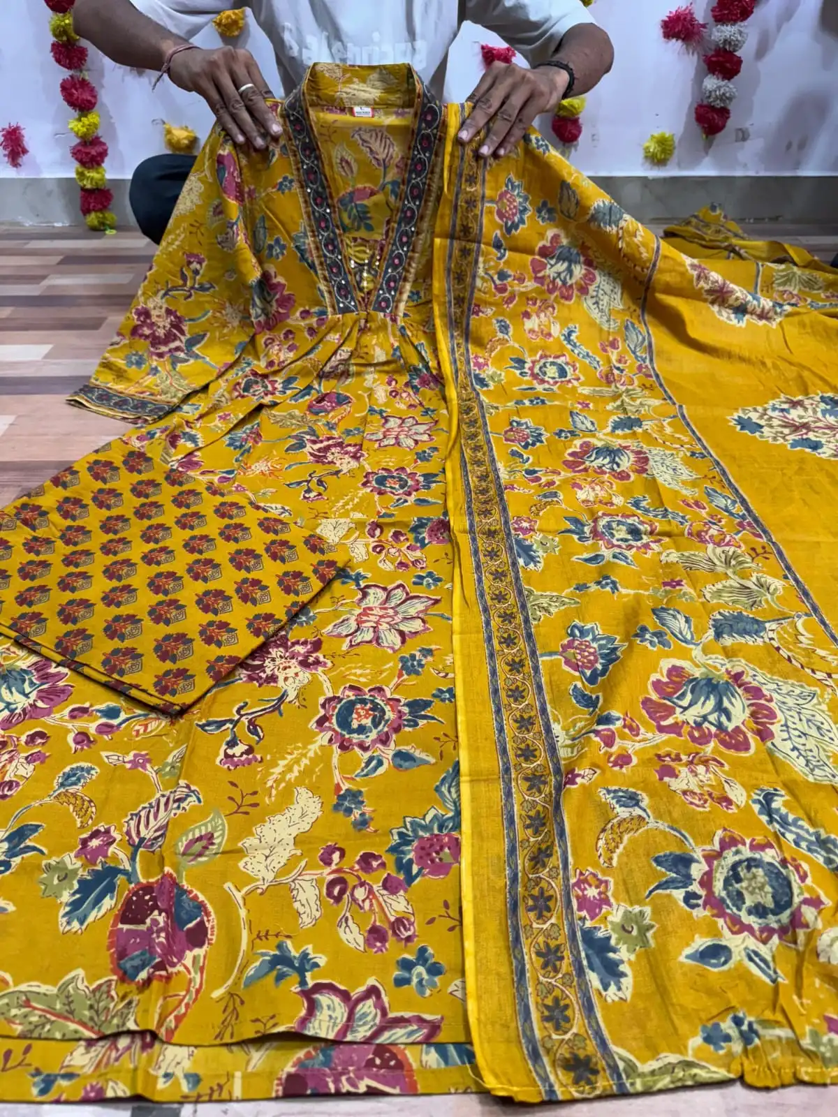 Beautiful 3pcs pattern kurti with dori for style & amazing flair *Cotton duppata printed* *Work - handwork on neck* *Size available*- 38,40,42,44,46 *Material* - cotton taj gurp Kurti length - 44 inches Pant -38 in Duppata - 2.2 meter full length Freeship