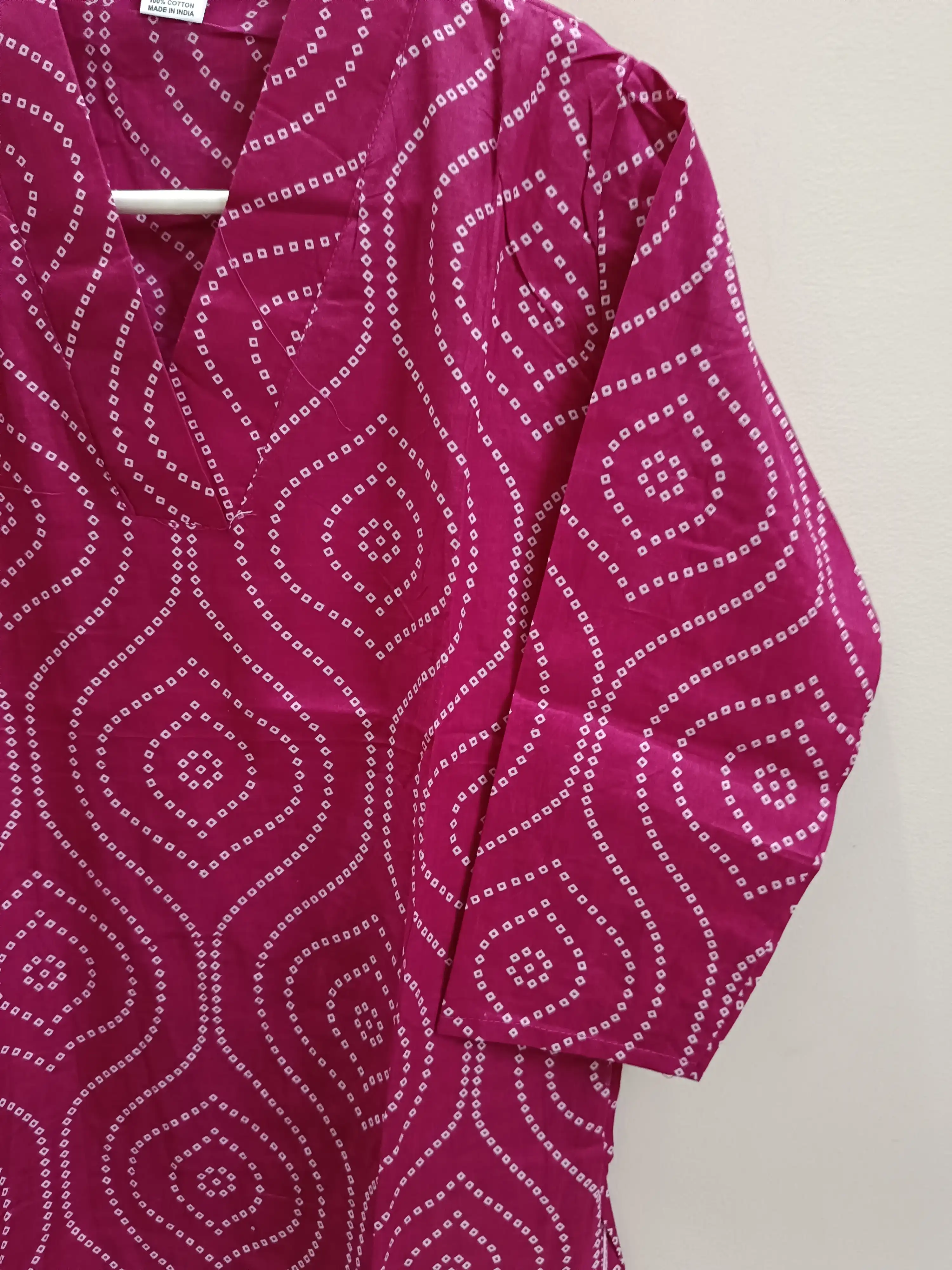 Cotton cambric V NECK KURTI WITH PANTS Bandhani Printed SIZES M-38,L-40,XL-42, XXL -44,XXXL-46