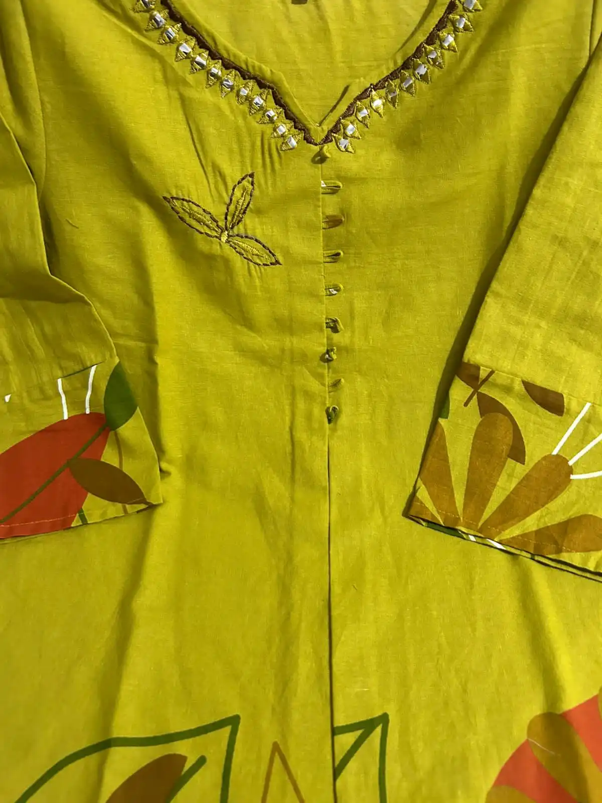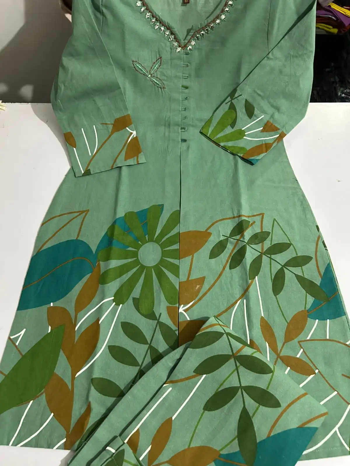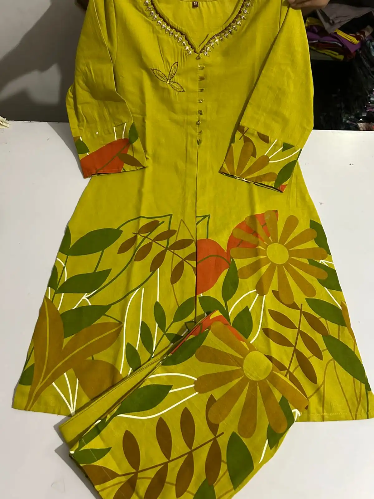 The Coordinate Smarts for everyday wear Cotton flex fabric with premium hand embroidery on kurta Beautiful neck embroidery and Lupii button detailing Printed trousers with 38 length Brilliant quality at budget price Available in sizes 38 to 44