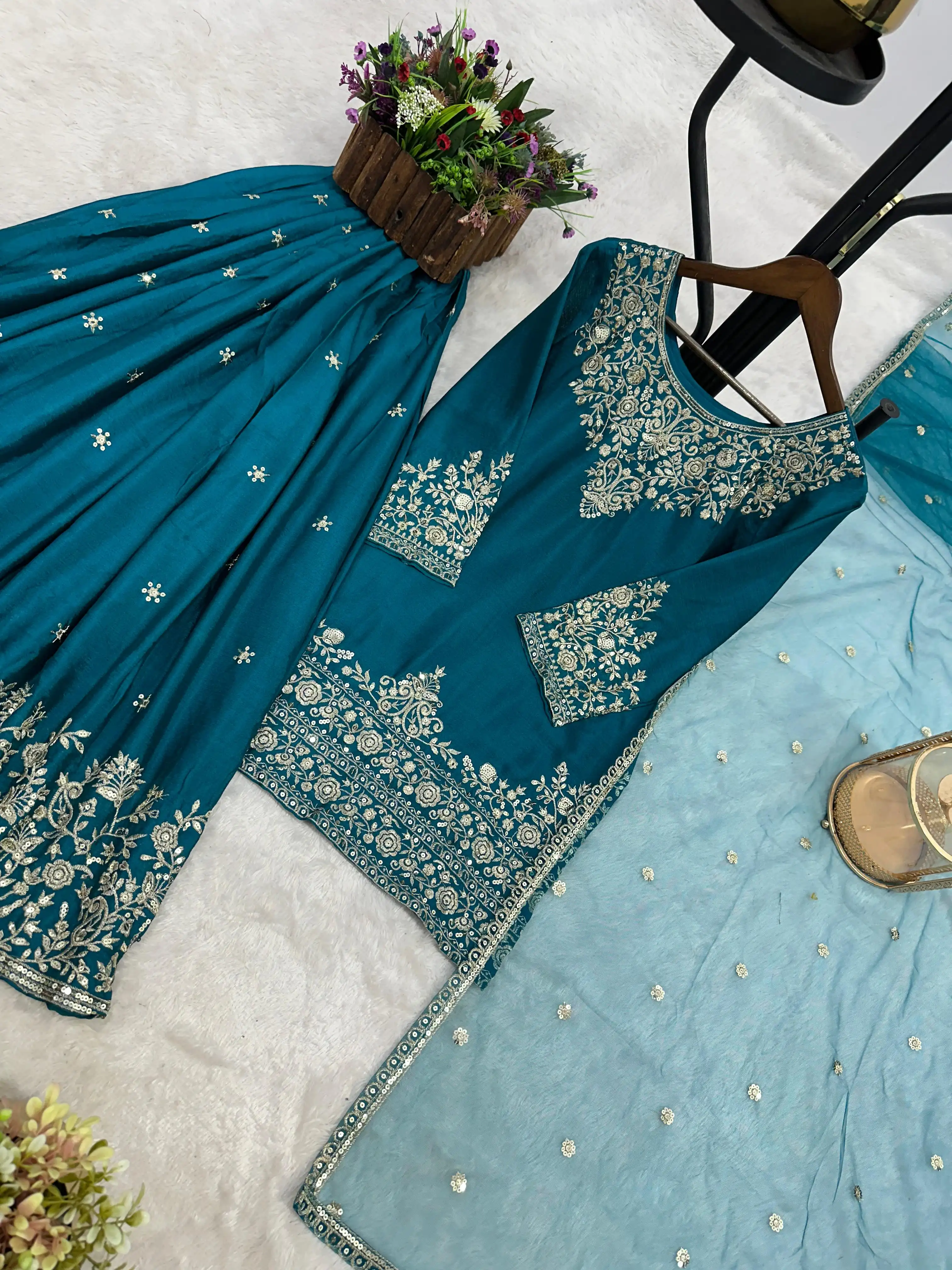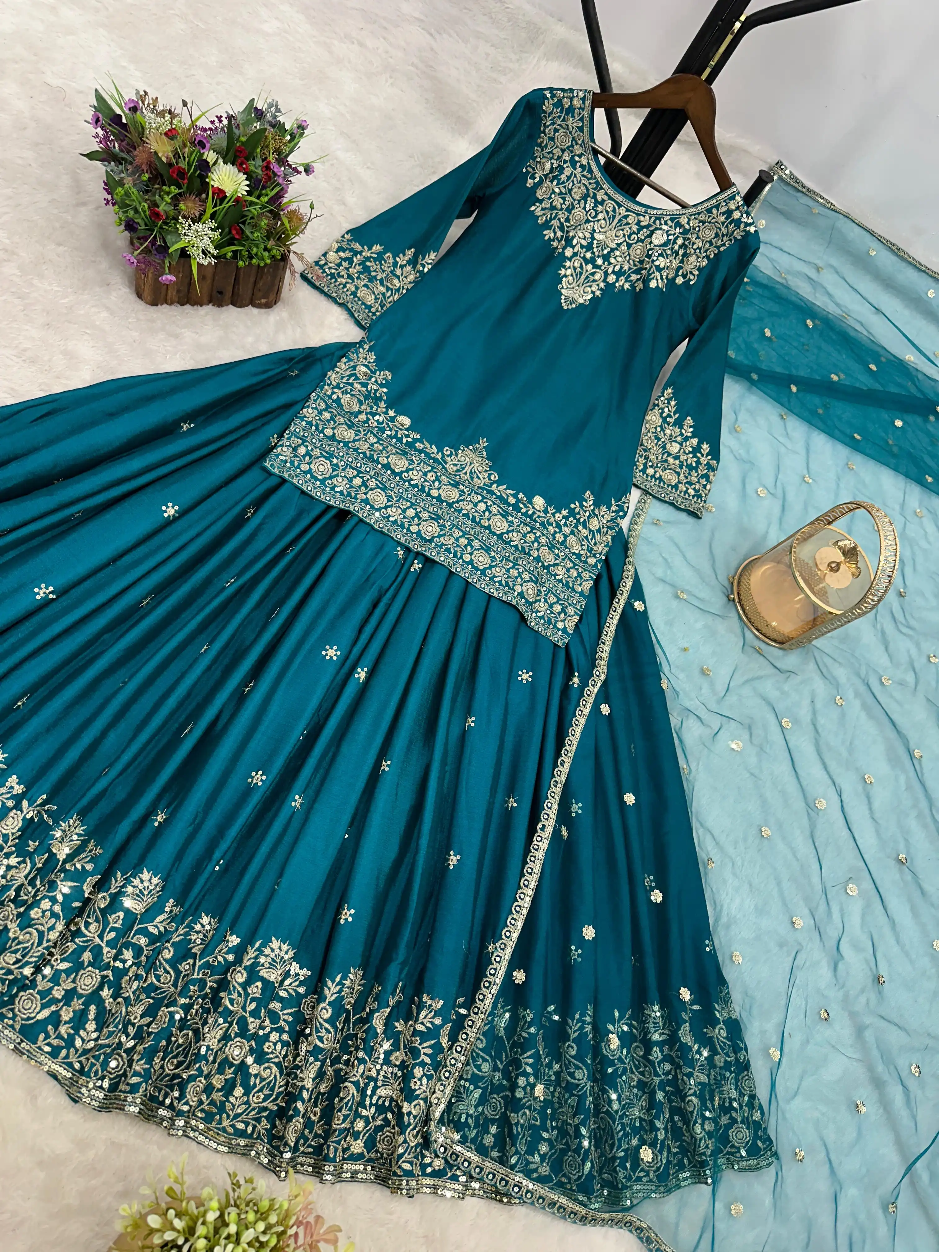 Launching Trending Ready-to-Wear Collection Make a stunning statement with our beautiful Top-Lahenga-Dupatta set—crafted in Chinon Silk with intricate embroidery and 5mm sequins work. 🧵 FABRIC & DESIGN DETAILS 🧵 👗 TOP Fabric Pure Chinon Silk with full sleeves Inner Soft Micro Cotton Work Heavy front embroidery with 5mm sequins Length 34 inches Ready to Wear 👑 LAHENGHA Fabric Pure Chinon Silk Inner Micro Cotton Work Full heavy embroidery + 5mm sequins Flair 3 meters Length 40 inches Size Up to XXL (44) — Fully Stitched 🧣 DUPATTA Fabric: Premium Butterfly Net Work: Fancy embroidery + 5mm sequins Length 2.1 meters ⚖️ Weight: Approx. 950 (Unbeatable quality at the best price) 👑 King of Quality | Queen of Elegance 👑 📸 Note Slight color variation may occur due to screen differences.