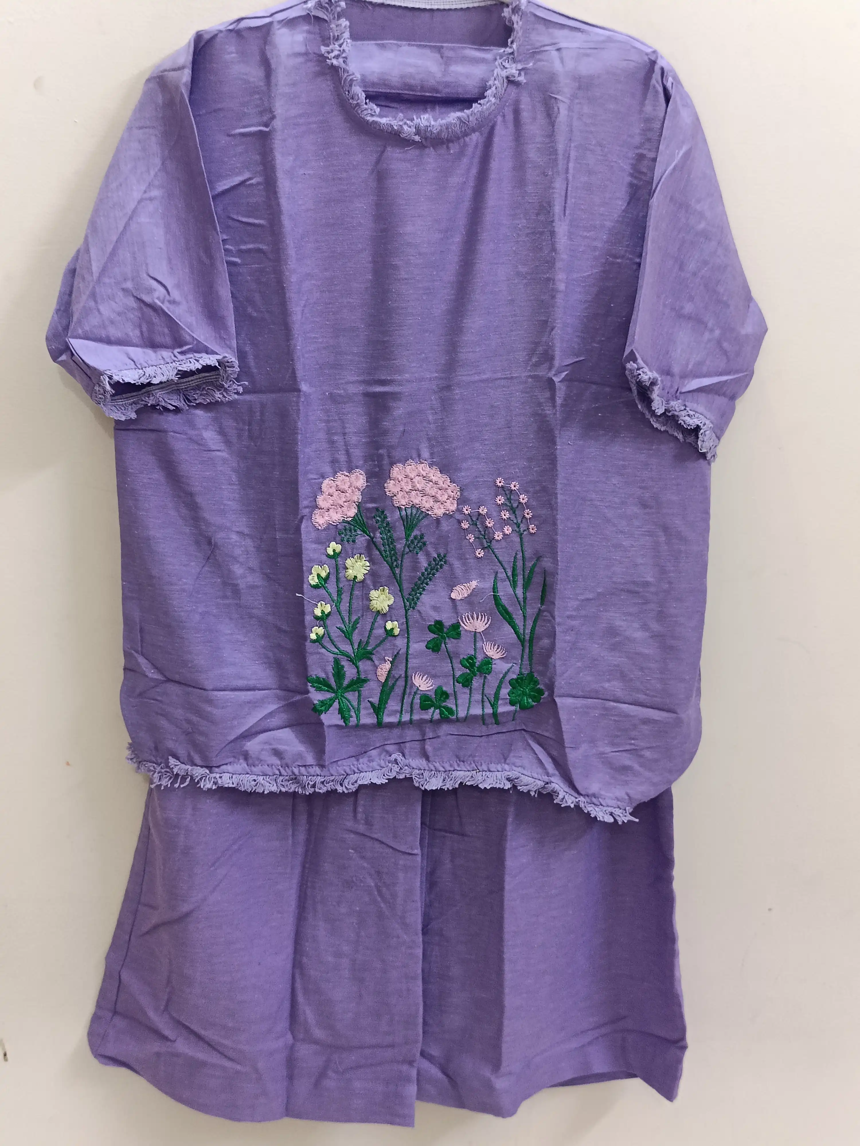 COTTON FLEX EMBROIDERED CO-ORD SET WITH HALF ELASTICATED WAIST CLOSURE PLAZZO FREE SIZE UP TO 42