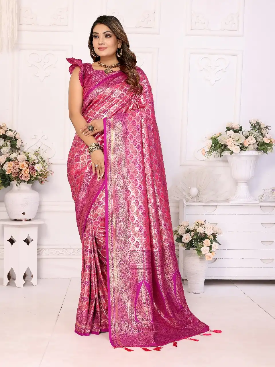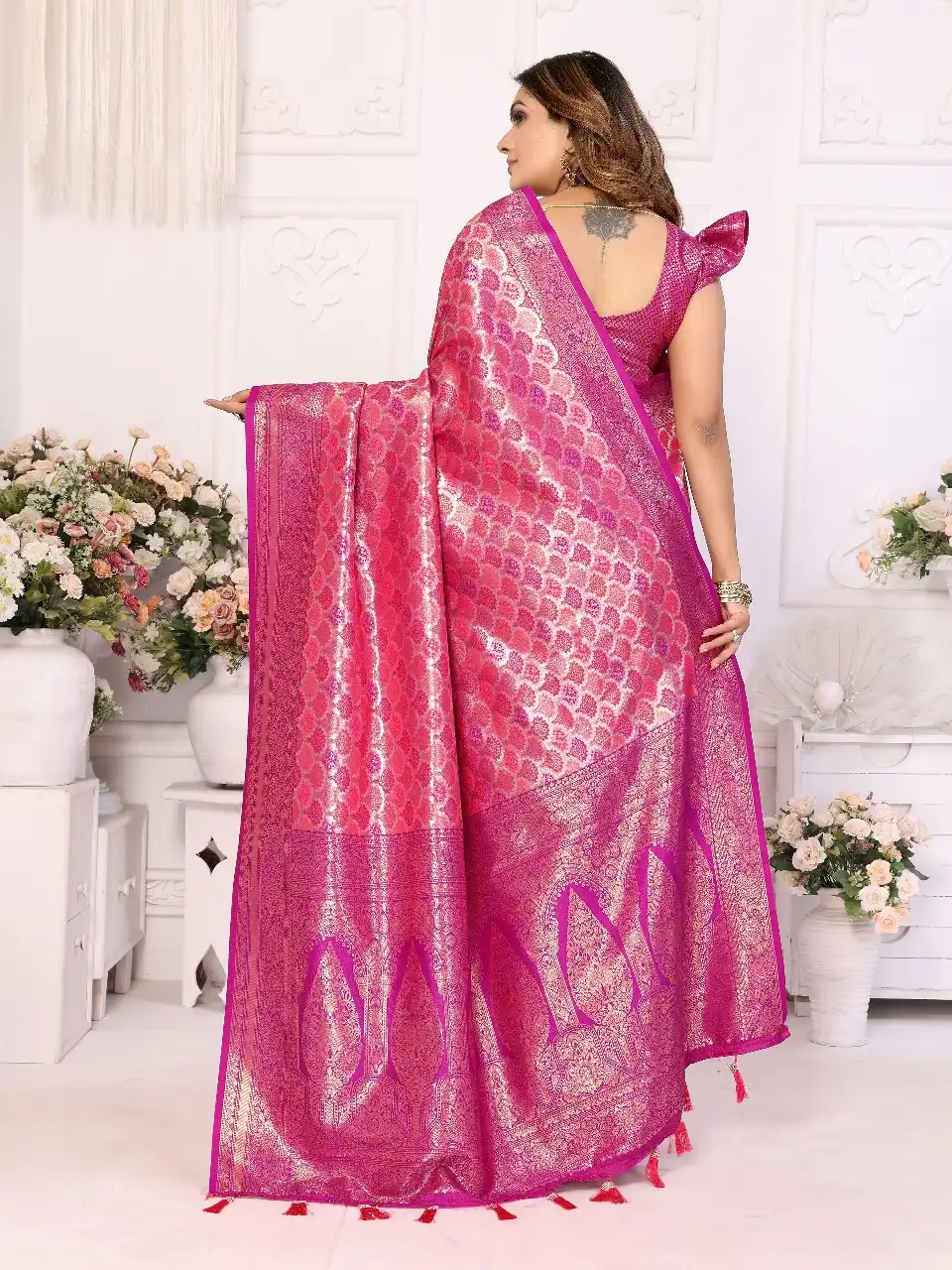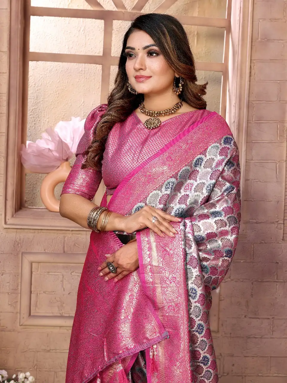 Elegant Banarasi Chaturi Silk Saree Step into the spotlight with this exquisite Banarasi Chaturi Silk Saree a perfect blend of tradition richnessand festive charm Fabric Luxurious Chaturi Silk Design Intricately woven Chaturi body with Zari weaving border and a grand rich pallu Blouse Comes with a contrast blouse featuring a woven border This saree reflects timeless beauty with its sheer shine and elegant drape – ideal for festivals weddings and special occasions. Best Quality • Best Price • Best Products A perfect pick to elevate your ethnic style