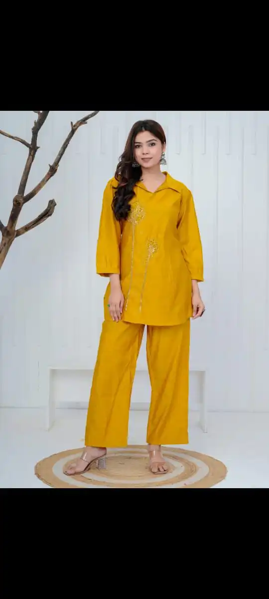 Luxury vibes, pocket‑friendly price. Premium Roman silk co‑ord with intricate adda beadwork, . Sizes M to XXL, free shipping. Celebrate in style — message to order now! 🎉