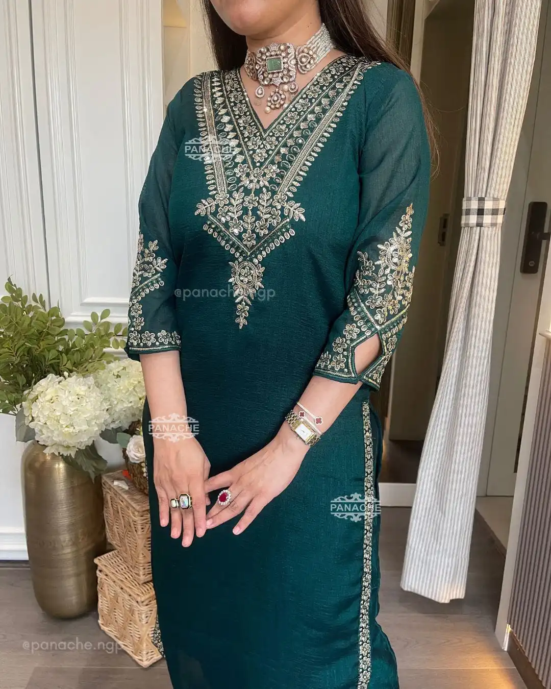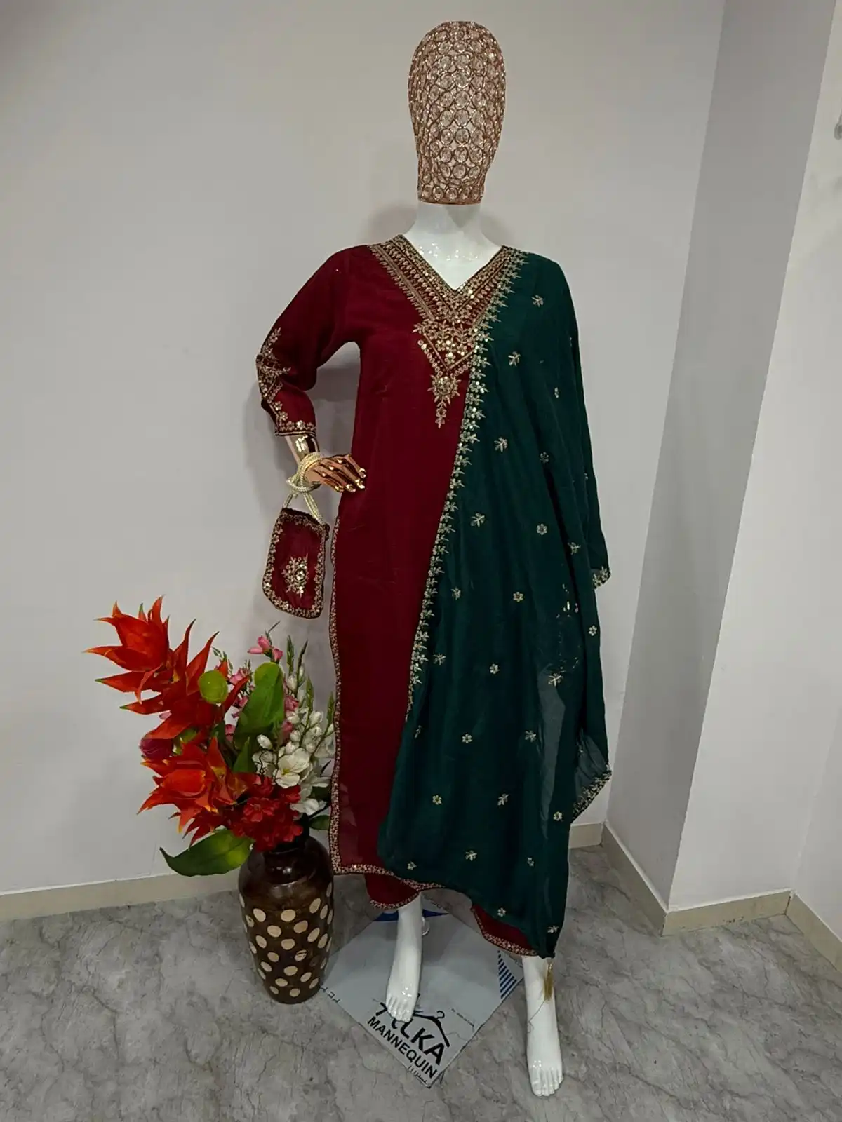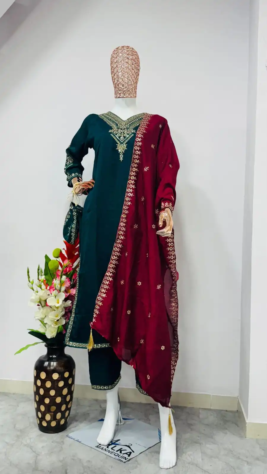 Don’t wear what fashion designers tell you to wear Wear what they wear Presenting a beautiful festive wear set made from heavy Vichitra Bluming Silk This designer kurti pant and dupatta set comes with delicate coding work and full inner lining for comfort and elegance Kurti made from premium Vichitra Silk Pant in matching Vichitra Silk with soft lining Dupatta crafted from rich Vichitra Silk